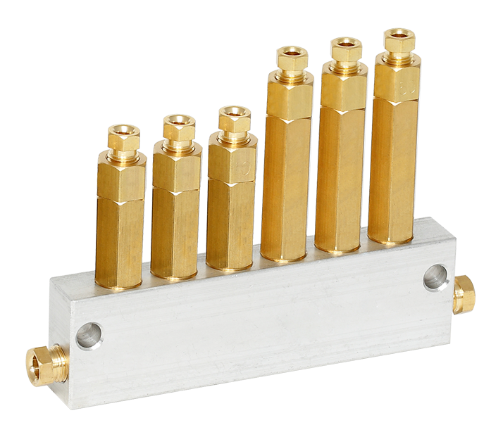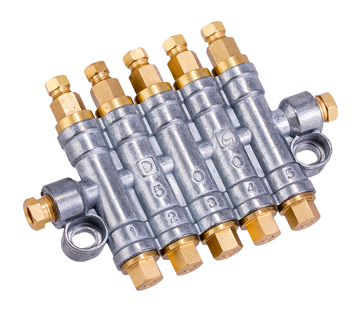 加壓出油定量分配器用於需要立即將潤滑劑輸送到潤滑點的應用。特別是在潤滑點管線長和軸承背壓高的情況下,因分配器所排出潤滑壓力等同於主管路的工作壓力進而增加支管路的工作壓力,可為軸承提供可靠的潤滑。